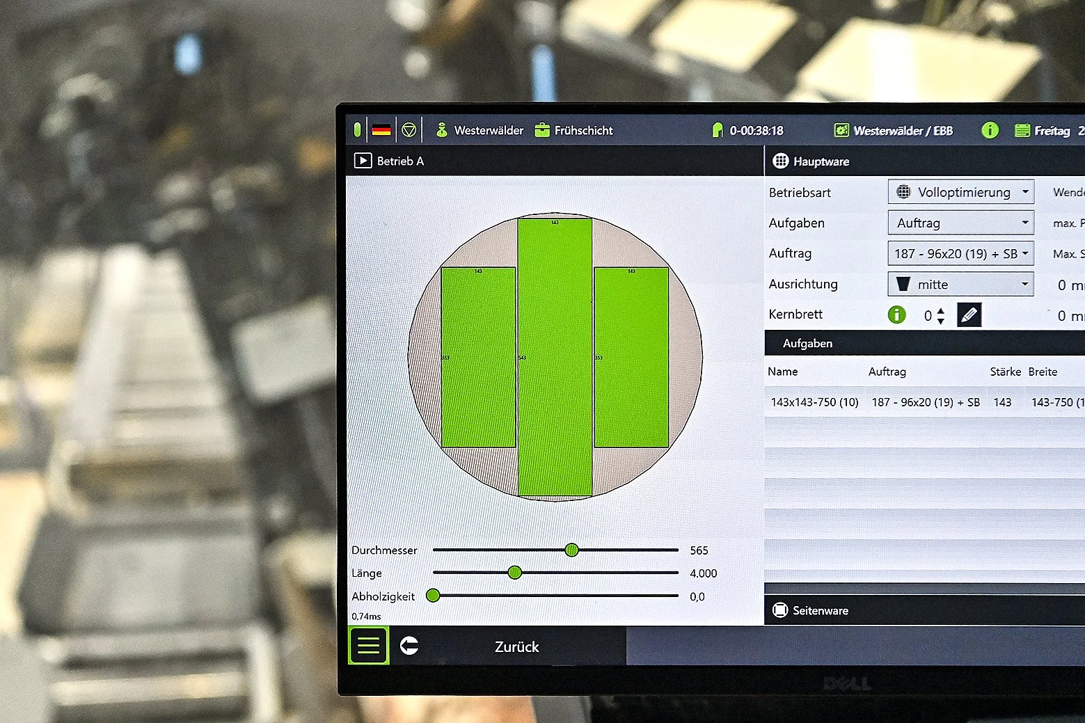 Diese Vorgehensweise, so der Betriebsleiter, sei nicht allein technisch sinnvoll, um die schwieriger zu sägende Buche bearbeiten zu können, sie erhöhe zudem die Ausbeute. Diese sei dann noch besser als beim Nadelholz, nur ein besonders geringer Anteil des Stammes bleibe auf diese Weise als Sägenebenprodukt für eine andere Nutzung wie die Pelletproduktion übrig. „Das Verfahren wird durch das mehrfache Drehen ein bisschen aufwändiger, denn es erfordert mehr Bearbeitungszeit je Stamm. Doch dafür ist eben die Ausbeute besser“, stellt Alhäuser die Vorteile noch einmal heraus.